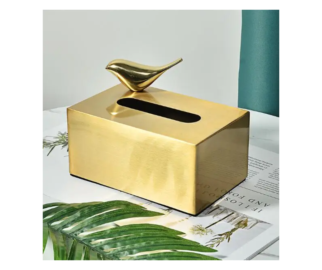 Cutie metalica pentru servetele din metal auriu periat, 19x9x12cm