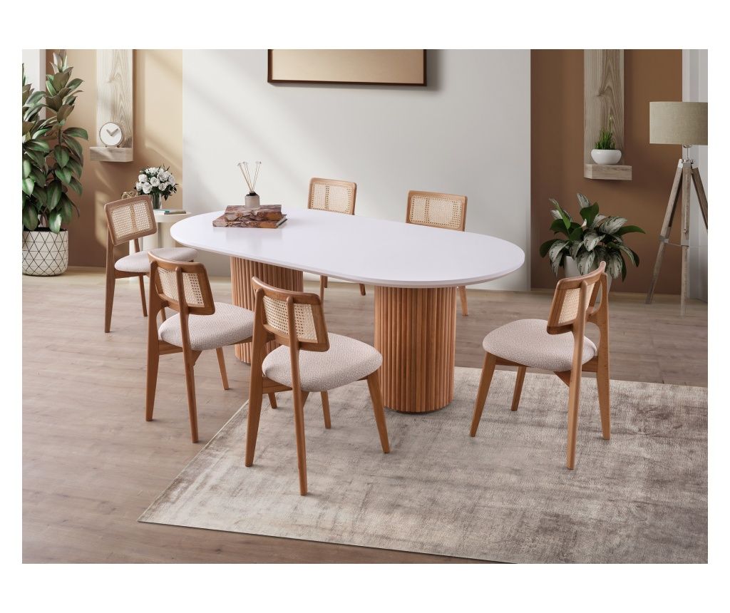 Masa pentru sufragerie LINE - 933, culoare alb, culoare nuc