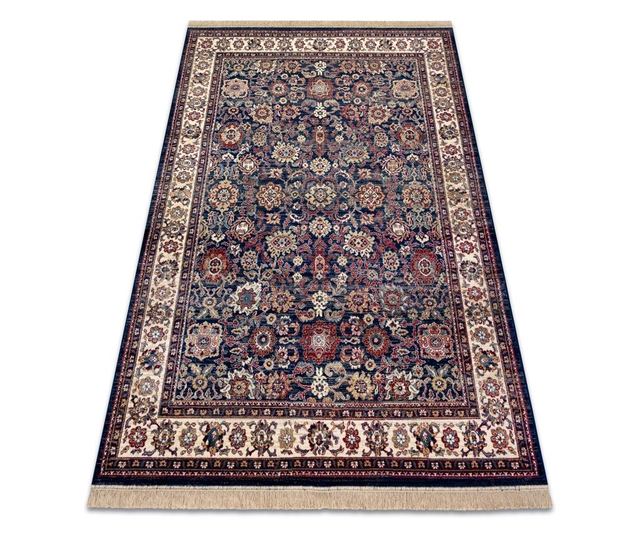 Covor Windsor 22991 ORNAMENT, CADRU, FRANJURI albastru inchis / fildeş 60x100 cm 60x100 cm