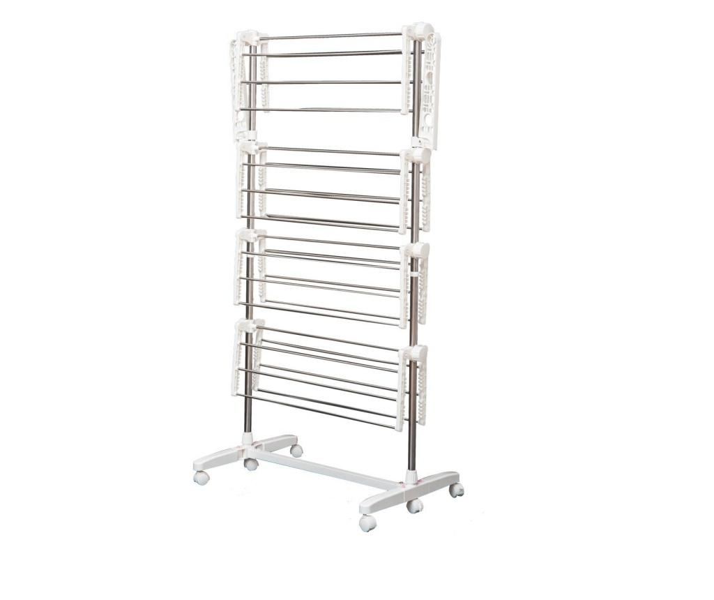 Acest uscător de rufe pliabil este ideal pentru case sau camere de mici dimensiuni datorită design-ului său compact. Atunci când nu este folosit se poate închide ocupând astfel foarte puțin spațiu. Datorită roților poate fi poziționat oriunde doriți.Fabricat din inox este stabil și rezistent la rugină și lucrat cu grijă . Suportul nostru de rufe cu design inovativ nu poate lipsi din casa d-voastră!