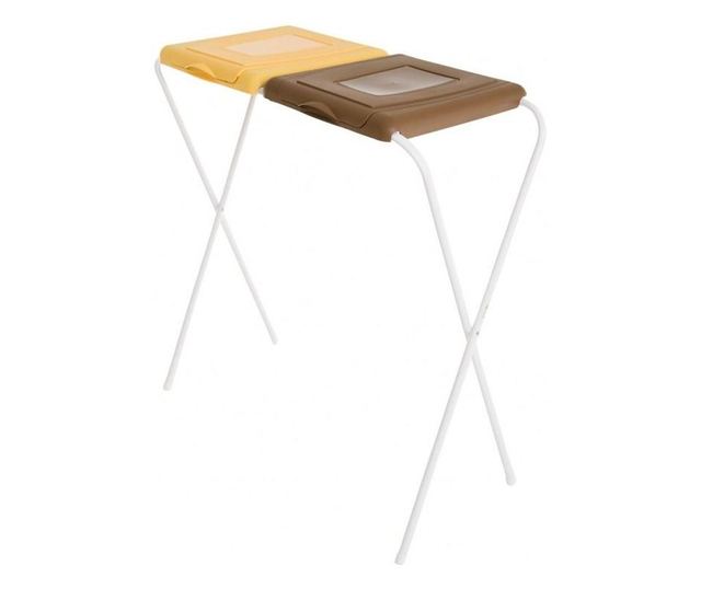 Stand cu doua camere 37x83x82cm, cu capac galben si maro, dedicat pungilor de 120l, constructie de tub durabil din otel, asamblare usoara si rapida a sacului.