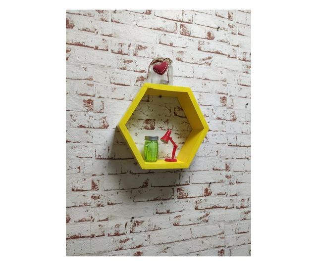Raft de perete din lemn, in forma hexagonala, tip fagure, cu prindere ascunsa, Carnival, galben, 37.5 x 32.5 x 9.5 cm