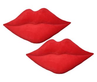 Perne decorative cu forma de buze feminine realizate din plus Minky, umplutura antialergenica SuperBall. Se pot folosi ambele parti ale pernelor. Umplutura este nedetasabila. Se recomanda spalarea manuala in apa rece sau calduta, fara inalbitori pe baza de clor, fara stroarcere, uscare prin picurare pe suprafata intinsa.