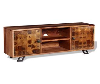 Realizat din lemn masiv de sheesham cu finisaj mat, dulapul Hi-Fi este durabil, ușor de întreținut, și va aduce o notă de farmec rustic casei dvs. Lemnul de sheesham este un lemn tropical de esență tare, faimos pentru granulația bogată, acesta fiind cunoscut și ca lemn de trandafir sau palisandru. Datorită granulației frumoase a lemnului, fiecare dintre dulapurile TV este unic și ușor diferite de celelalte. Acest dulap TV este susținut de niște picioare din metal robuste, ce îmbogățesc aspectul estetic.