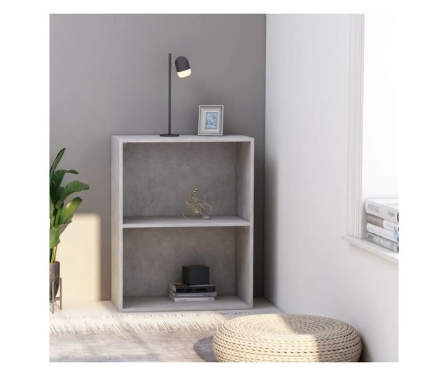 Bibliotecă cu 2 rafturi, gri beton, 60 x 30 x 76,5 cm, PAL