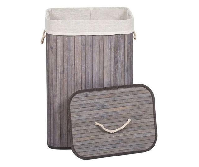 Cos pentru rufe, din bambus si material textil, 60 l, 40 x 30 x 50 cm, Grunberg BM023/GRI (gri)
