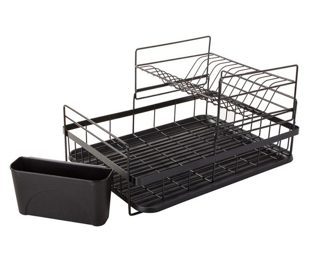 Suport pentru vase 07121, 2 nivele, suporturi pentru ustensile, negru