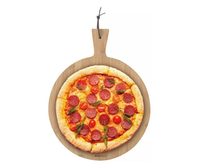 Placa pizza Kinghoff KH 1674, 35 cm, Maner confortabil, Bambus
