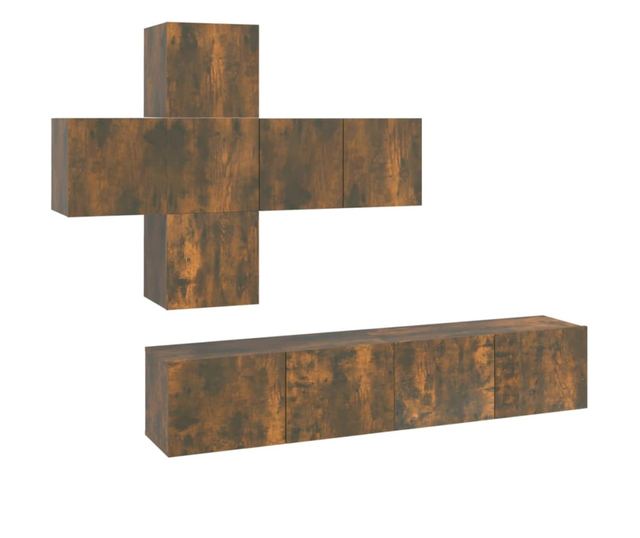 Set dulapuri TV, 7 piese, stejar fumuriu, lemn prelucrat
