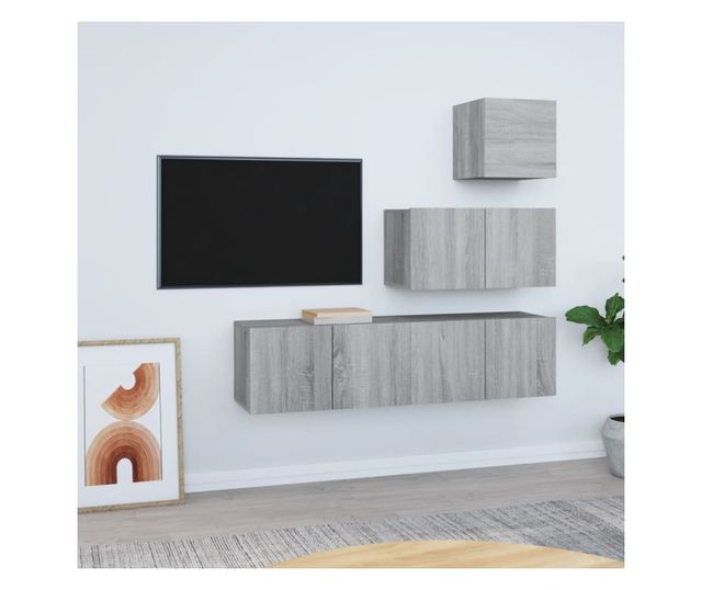 Set dulapuri TV, 4 piese, gri sonoma, lemn prelucrat