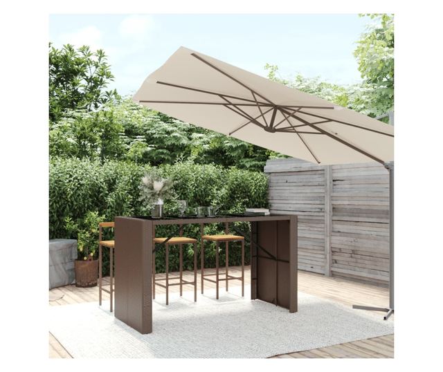 Această masă de bar la modă, cu blat din sticlă, care combină atât stilul, cât și funcționalitatea, este cu siguranță menită să fie piesa centrală a grădinii, terasei și oricărui alt spațiu de locuit.