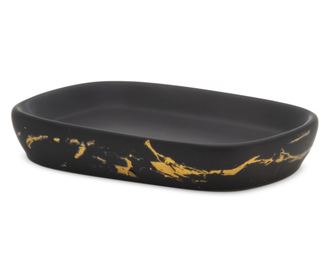 Sapuniera, negru, Aurum Accesoriile aurii sunt o tendinta care se mentine de mai multe sezoane si se aplica si echipamentelor de baie. Accesoriile de baie din linia Aurum a brandului Jotta se incadreaza perfect in acest trend. Aurum este o colectie inspirata din marmura neagra si aurie, completeaza perfect decorul grupurilor sanitare. Acestea sunt fabricate din dolomit. Foarte practice si usor de curatat, dar sunt solide si durabile. Forma moderna, insertiile aurii si efectul de marmura fac ca interiorul modern sa se potriveasca perfect. Linia Aurum include accesorii de baza si in acelasi timp necesare pentru baie: dozator de sapun, sapuniera si cana de baie care poate fi folosita si ca recipient pentru periuta de dinti.