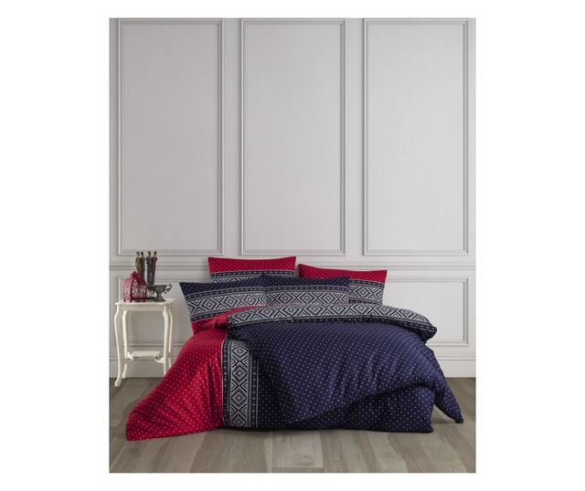 Lenjerie de pat dublu, Story Home, bumbac ranforce 144TC, pentru 2 persoane, 4 piese, Embla Blue Red