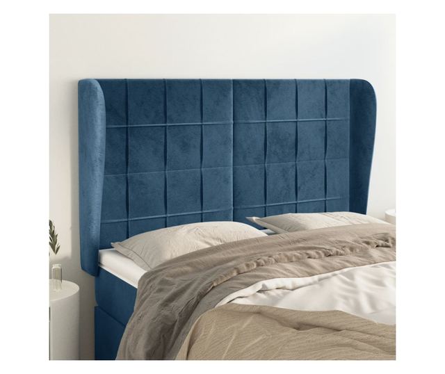 Tăblie pat cu urechi albastru închis 147x23x118/128 cm catifea