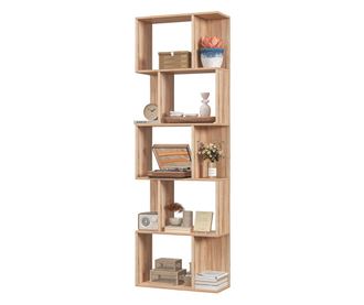 Biblioteca cu 5 Rafturi Separate cu Spatiu de Economisire in Forma de S din Lemn, 60x24x184,5 cm, Lemn Natural