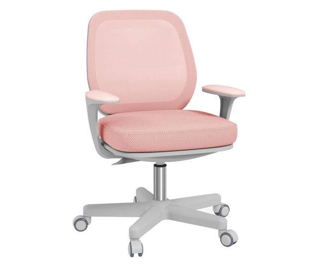 Scaun de Birou Respirabil cu Inaltime Reglabila, Scaun Rabatabil cu 5 Roti, 55x48x82.5-94.5 cm, Roz