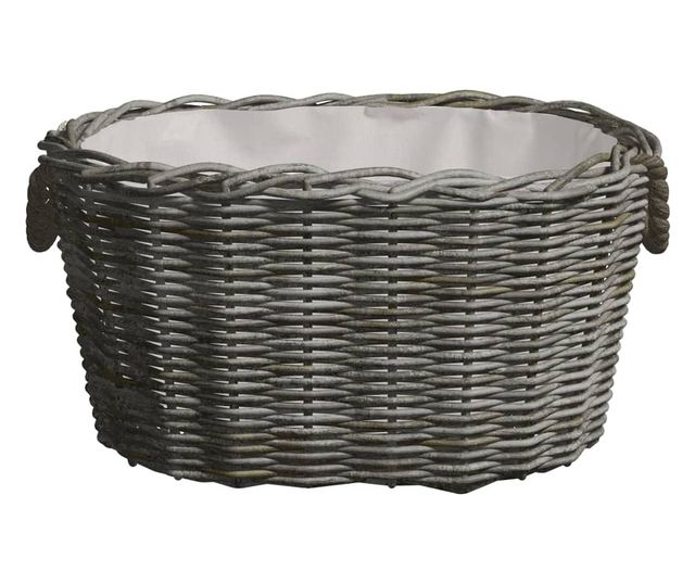 Realizat din salcie, acest coș pentru lemne de foc emană un farmec rustic, fiind un articol îndrăzneț și interesant în stil rustic. Cele două mânere din frânghie facilitează transportul coșului. Construcția durabilă și robustă îi asigură o durată lungă de viață. Fiind versatil, acest coș din răchită poate fi folosit și ca un coș pentru rufe sau pentru depozitarea legumelor.