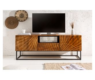 Acest suport TV combină eleganța și funcționalitatea, având sculpturi 3D unice, realizate manual din lemn masiv. Proiectat ca o piesă centrală pentru living, oferă spațiu generos și un aspect estetic plăcut.
