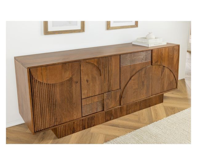 Comoda cu sertare Vstyle Irresistible 289884 combină funcționalitatea cu un design atractiv. Fabricată din lemn de mango de înaltă calitate, adaugă căldură și eleganță oricărei încăperi. Culoarea sa maro se potrivește cu ușurință în diferite stiluri de interior, creând o senzație sofisticată și armonioasă. Designul simplu, cu linii curate, o face o adiție excelentă pentru diverse camere. Puteți expune decorațiuni, cărți sau fotografii pe suprafața comodei pentru a vă personaliza spațiul. Ideală pentru living, dormitor sau hol, oferă mult spațiu de depozitare. Cu dimensiunile de 170 cm (lungime) x 38 cm (lățime) x 80 cm (înălțime) și o greutate de 68,2 kg, această comodă este o piesă de mobilier practică și elegantă.