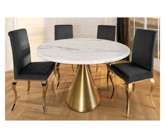 Masa de dining Vstyle Irresistible 289491 combină funcționalitatea și eleganța, fiind perfectă ca piesa centrală a casei tale. Suprafața sa mare poate acomoda 6-8 persoane, ideală pentru întâlniri de familie și socializare. Fabricată din marmură artificială și fier, această masă oferă lux și rezistență. Efectul de marmură albă cu accente de culoare șampanie creează un aspect sofisticat și plin de farmec pentru sufrageria ta. Masa măsoară 130 cm lungime, 130 cm lățime și 77 cm înălțime și cântărește 108.7 kg. Perfectă pentru cei care apreciază stilul și calitatea, adaugă o notă rafinată și creează o atmosferă plăcută.