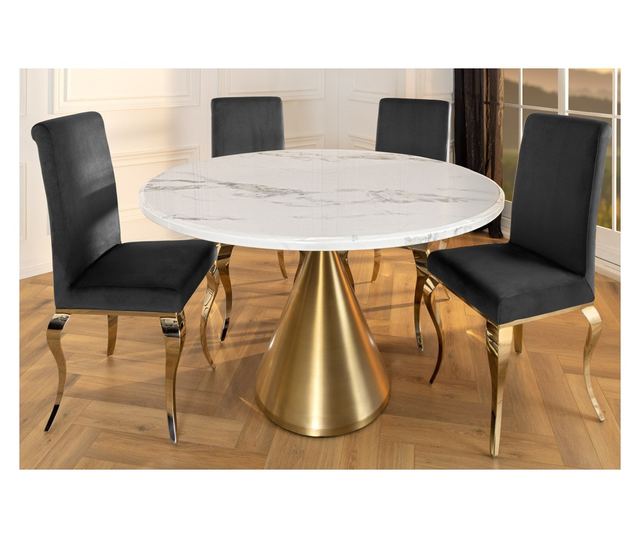 Masa de dining, efect marmură albă, culoare șampanie