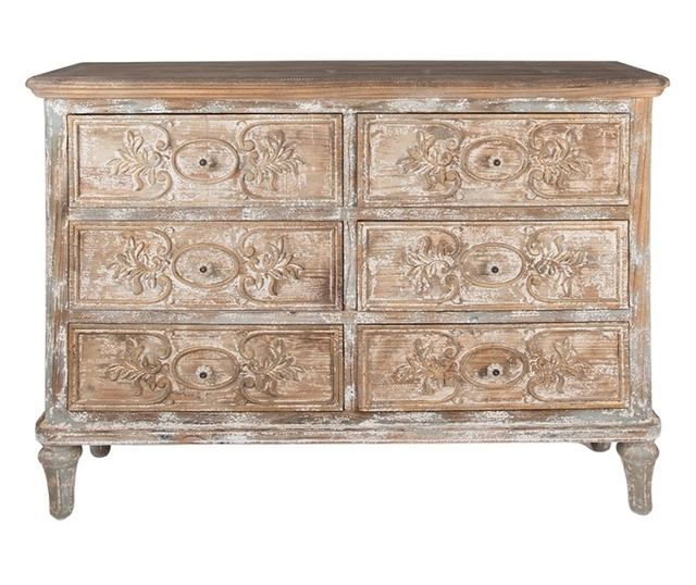 Comodă cu 6 sertare sculptate – Country Home Eleganță atemporală și funcționalitate generoasă Această comodă cu 6 sertare bogat sculptate este o piesă de mobilier cu un farmec aparte, inspirată de stilul rustic franțuzesc. Realizată din lemn masiv cu finisaj antichizat, face parte din colecția Country Home și este ideală pentru depozitarea obiectelor personale într-un cadru decorativ sofisticat. Design cu detalii artizanale și finisaj vintage Fronturile sertarelor sunt împodobite cu elemente florale sculptate în relief , iar suprafața este patinată manual pentru a reda un aer autentic, cu accente naturale. Structura robustă și forma clasică transformă această comodă într-o alegere perfectă pentru dormitor, living sau hol . Caracteristici principale: Material: lemn masiv cu finisaj rustic patinat 6 sertare spațioase , complet închise Detalii decorative sculptate cu motive florale și ovale Dimensiuni generoase – ideală pentru depozitarea hainelor, textilelor sau documentelor Stabilă și durabilă , cu picioare solide sculptate Depozitare organizată, cu stil Fără compartimente deschise , totul este păstrat discret și ordonat Perfectă pentru lenjerie, accesorii, documente sau textile Ideală în dormitor, living sau ca piesă de accent într-un hol spațios Design cu suflet , ce adaugă rafinament oricărui colț din casă O piesă decorativă care adaugă atmosferă Comoda Country Home este perfectă pentru cei care caută mobilier cu personalitate și valoare decorativă . Cu spațiu generos de depozitare și detalii sculptate manual, este o alegere rafinată pentru a aduce ordine, căldură și stil într-un spațiu locuit cu drag.