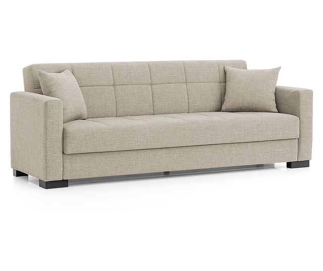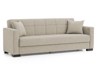 Canapea extensibilă Marbella, 3 locuri, material textil gri deschis, cu ladă depozitare şi arcuri, 210*78*78
