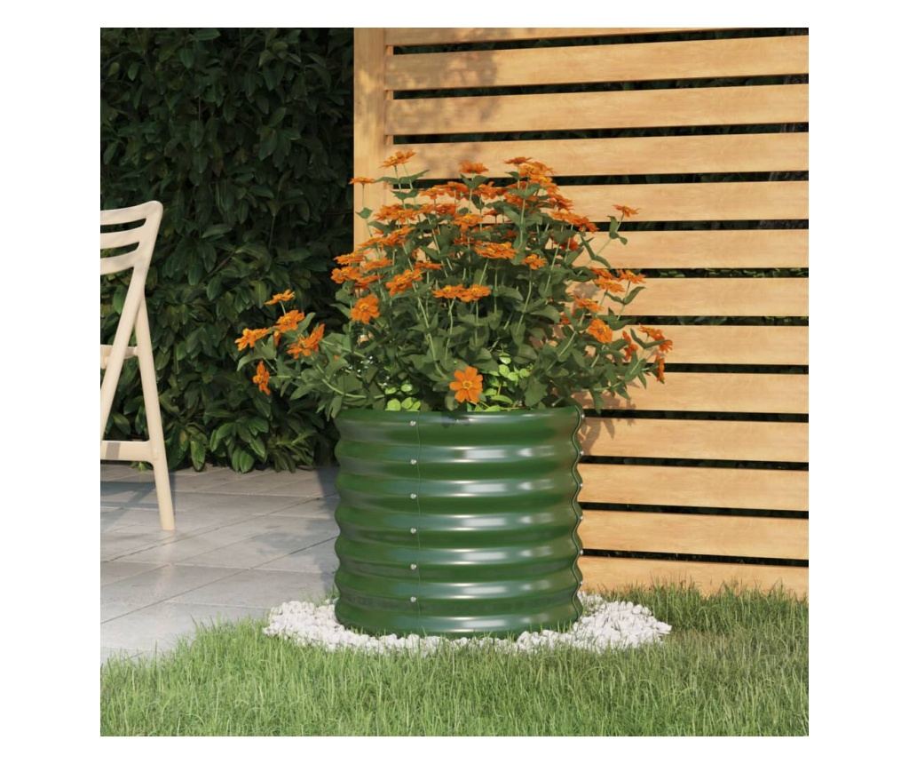 - Cadru robust: Fabricat din oțel vopsit electrostatic, acest ghiveci de plante este extrem de robust și durabil.