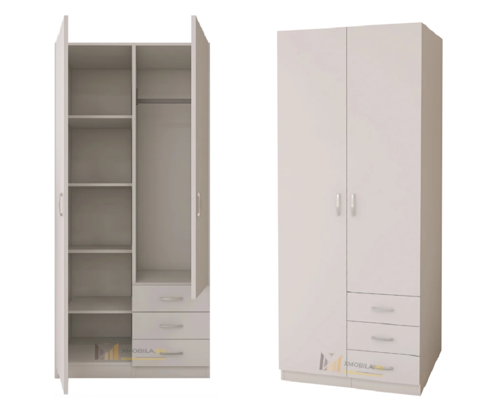 Dulap Mixt Star cu 2 Usi si 3 Sertare, 200x80x50 cm,Culoare Alb, Material din PAL de 18mm