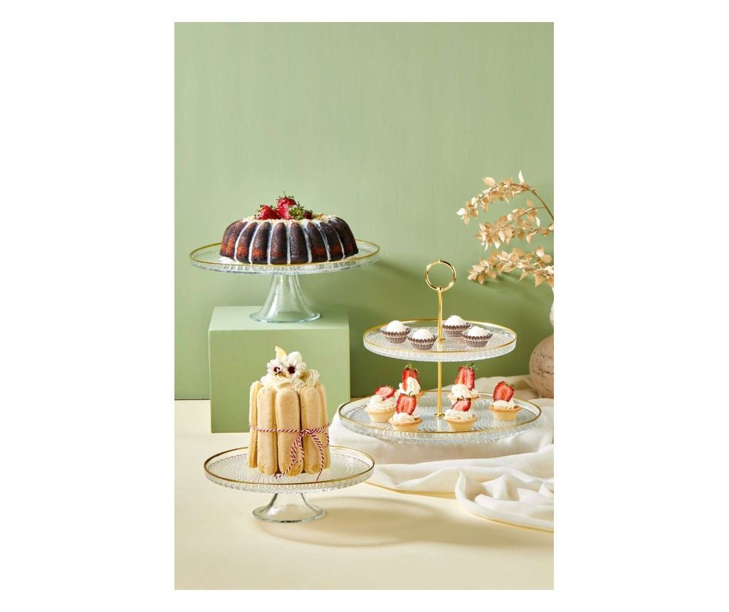 82 Lei Platou rotund din sticla cu 2 nivele, Deco Art, Diametru 20 cm, Finisaje aurii