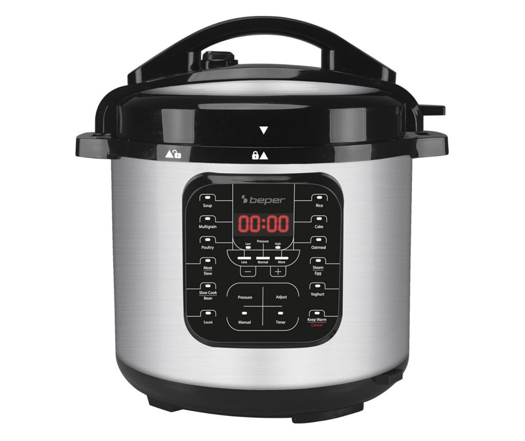 Multicooker Pressure Beper P101COS001, 1200W, 15 programe, 6 litri, Timer, Inox / Black