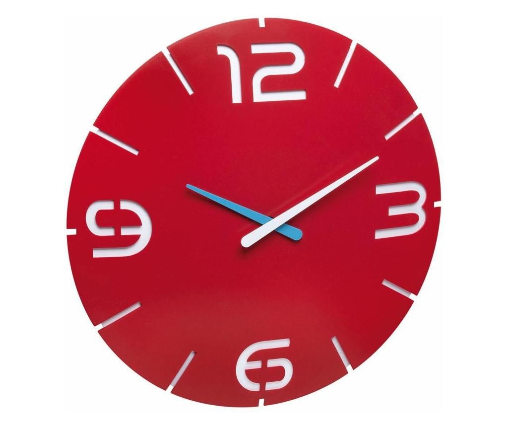 Ceas de perete colorat, analog, creat de designer, model CONTOUR, rosu, TFA 60.3047.05