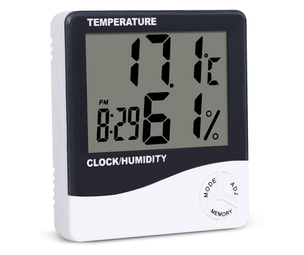 Termometru si higrometru de camera vitammy hygro, statie meteo, ceas, alarma, indicator confort, alb 2x8,5x9 cm