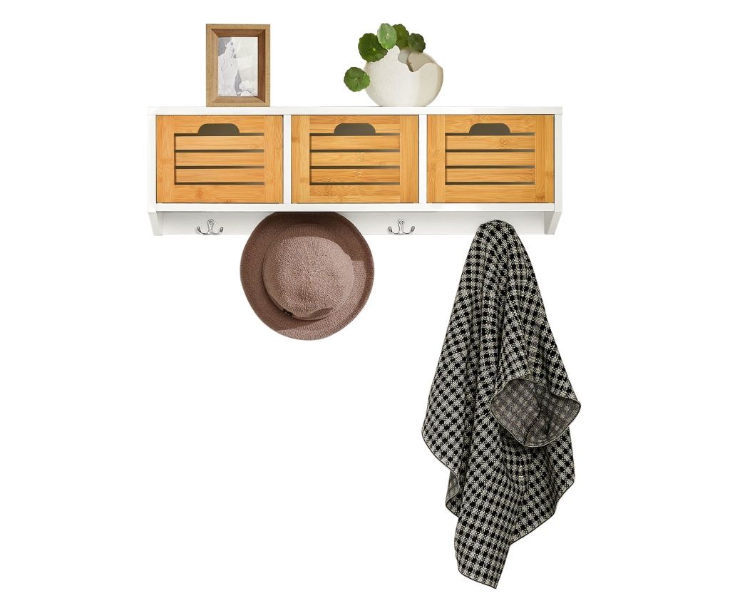 SoBuy cârlige de perete, Cârlige de perete cu rafturi, Portmanteau cu raft FHK17-W