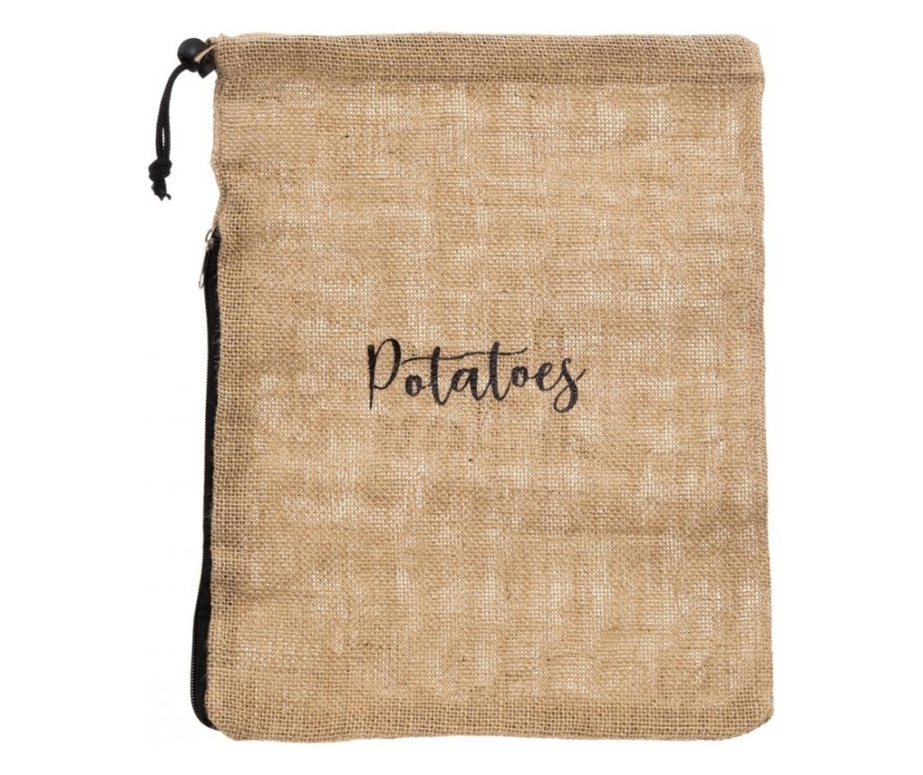 Set 3 saculeti depozitare Cartofi, ceapa si usturoi, textil, model in Engleza, 28X38 cm