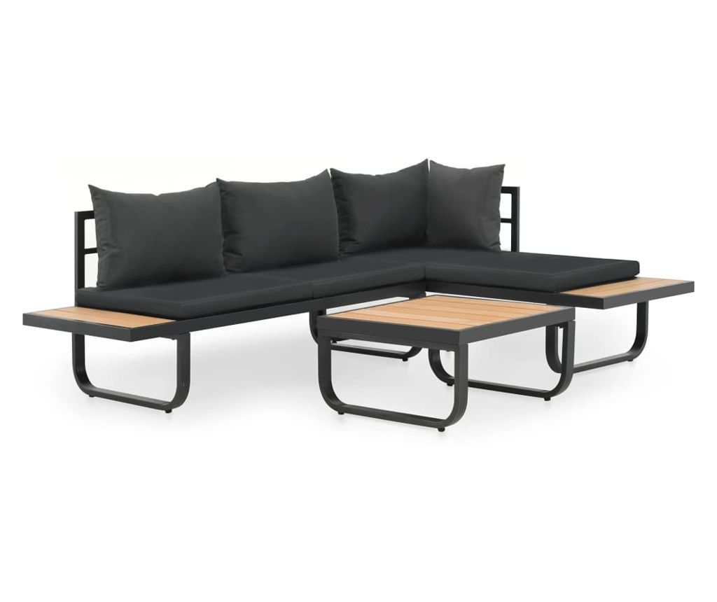 Set canapea de grădină colțar cu perne, 2 piese, aluminiu, WPC